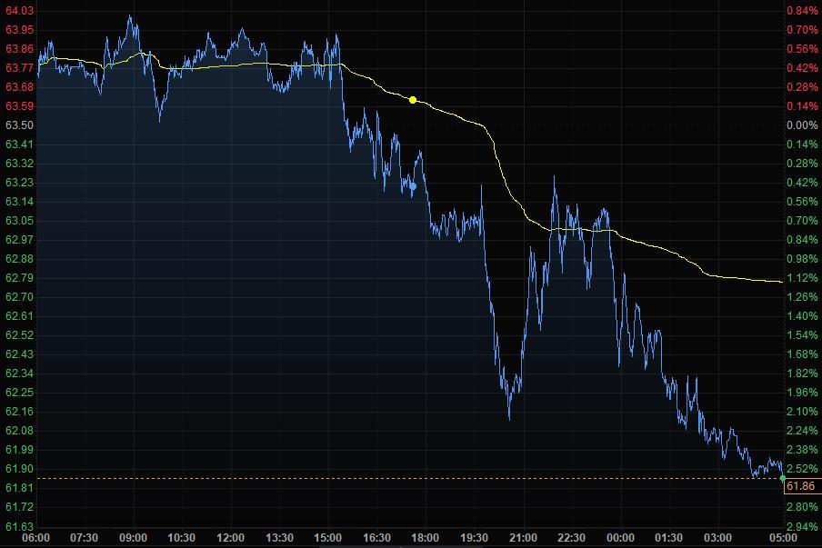 商品收盘方面,COMEX 12月黄金期货收涨0.05%,报1784.00美元/盎司。WTI 10月原油期货收跌1.36美元,跌幅2.14%,报62.14美元/桶;布伦特10月原油期货收跌1.27美元,跌幅1.91%,报65.18美元/桶。
