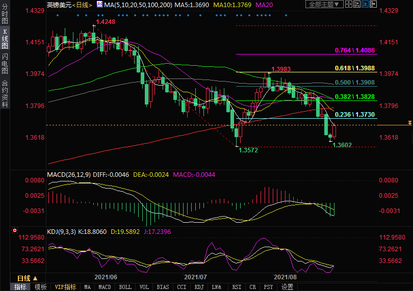 上方需要关注的阻力位有1.3730、1.3790、1.3828,下方需要关注的支撑位有1.3602、1.3572、1.3520。