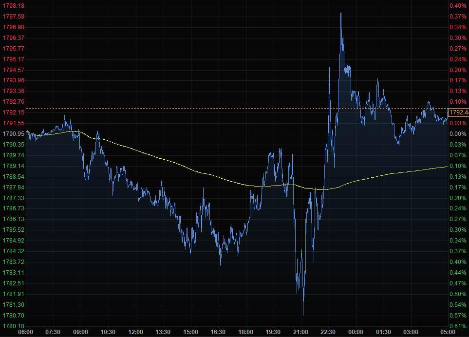 现货黄金周四基本持稳,收报1792.44美元/盎司,此前因美元走强而大幅回落,投资者期待美联储在杰克森霍尔研讨会上就缩减经济支持发布立场。