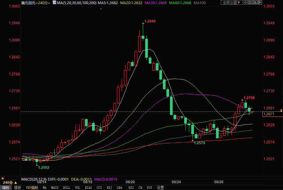 北京时间8月27日,美元兑加元报1.2671/73