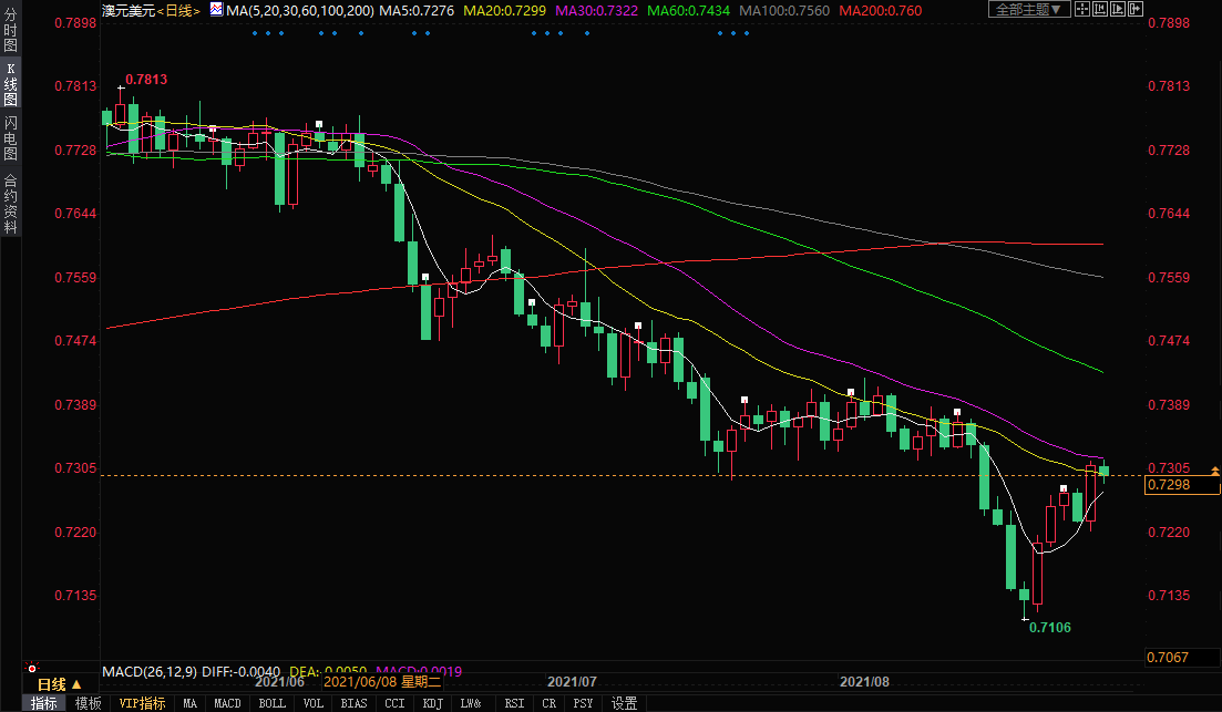 周一(8月30日),美元指数触及两周低点92.596后企稳,因上周五美联储主席鲍威尔表示,不急于缩减大规模刺激措施,美元受到打压。然而有调查显示,澳洲经济第二季或已有减速苗头,第三季可能因封锁而萎缩。虽然美元相对疲软,但澳元兑美元日内仍小幅走低。