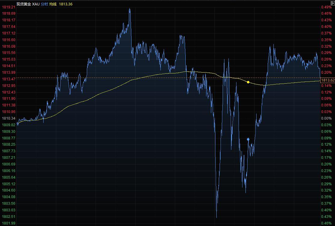现货黄金周二小幅上涨,报1813.62美元/盎司,美元指数跌至逾三周低点,令黄金相对持有其他货币的买家来说更便宜;不过金价涨幅放缓,因部分投资者在美国8月非农就业数据本周晚些时候公布前持观望态度。