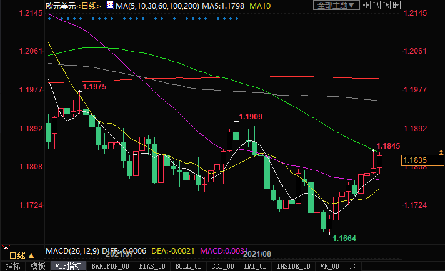 北京时间9月1日21:15,欧元兑美元报1.1836/38。