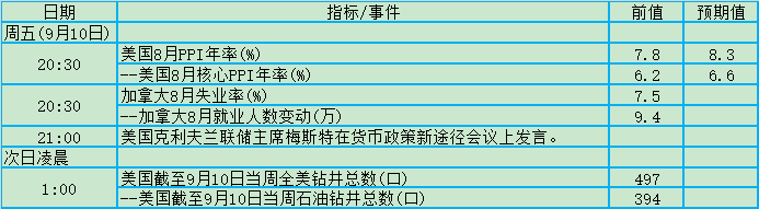 周四(9月9日)关键词:中国通胀、德贝尔、欧洲央行决议、拉加德、美国初请、EIA、戴利、麦克勒姆