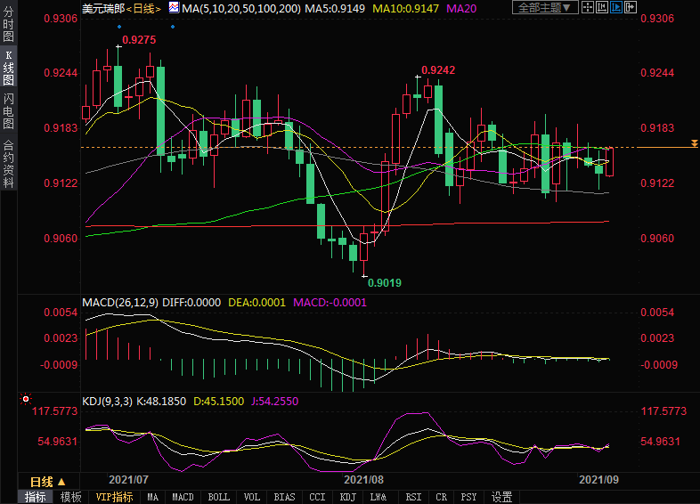 美元兑瑞郎终结连跌,上方阻力看向0.92
