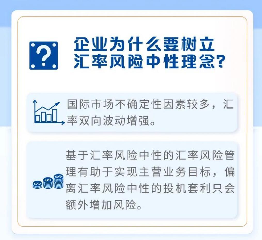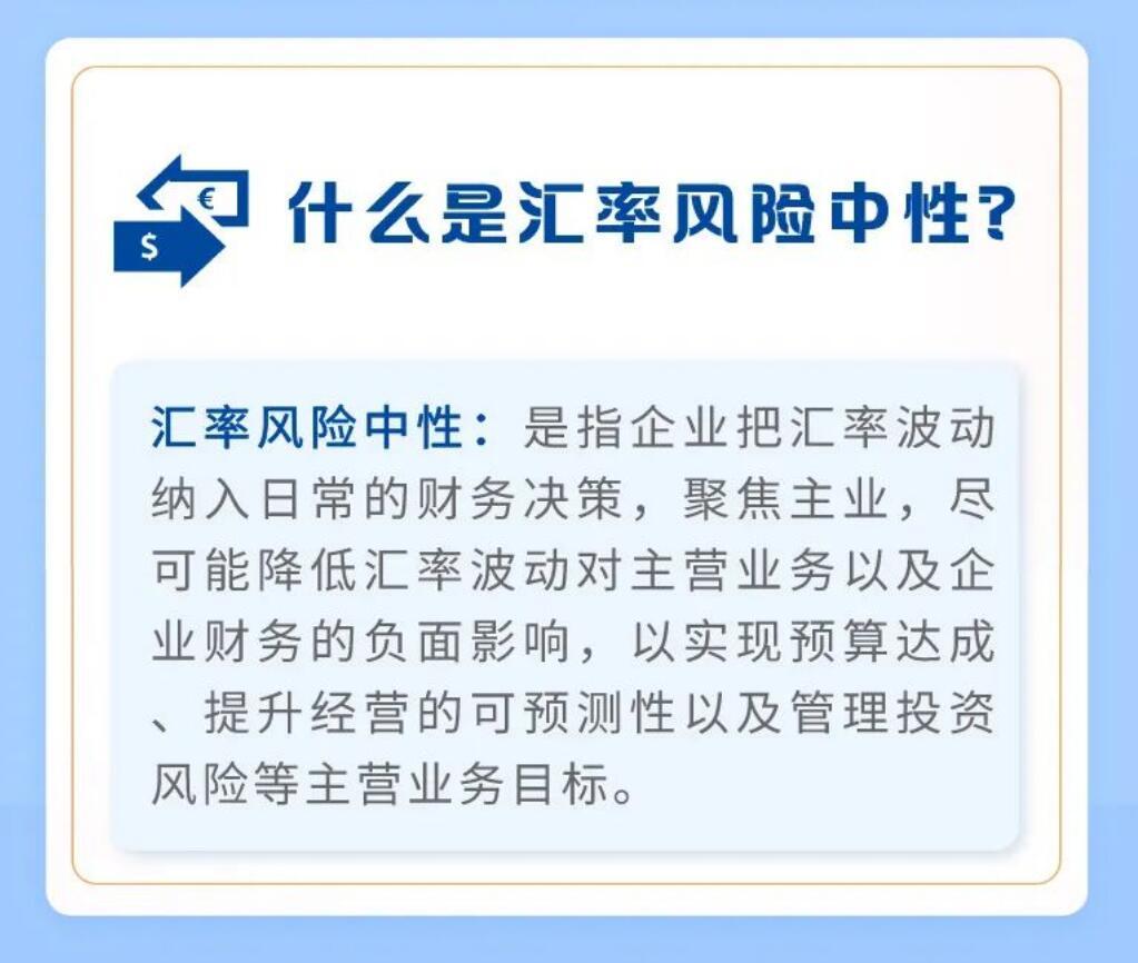 一张图:一图读懂“汇率风险中性” 2021-09-07 16:44 汇率风险:在企业日常经营中,从签订合同到收付货款再到结售汇,往往需要经历数月,甚至更长的时间周期,汇率的波动会对企业的经营造成影响…… 制作:全国外汇市场自律机制