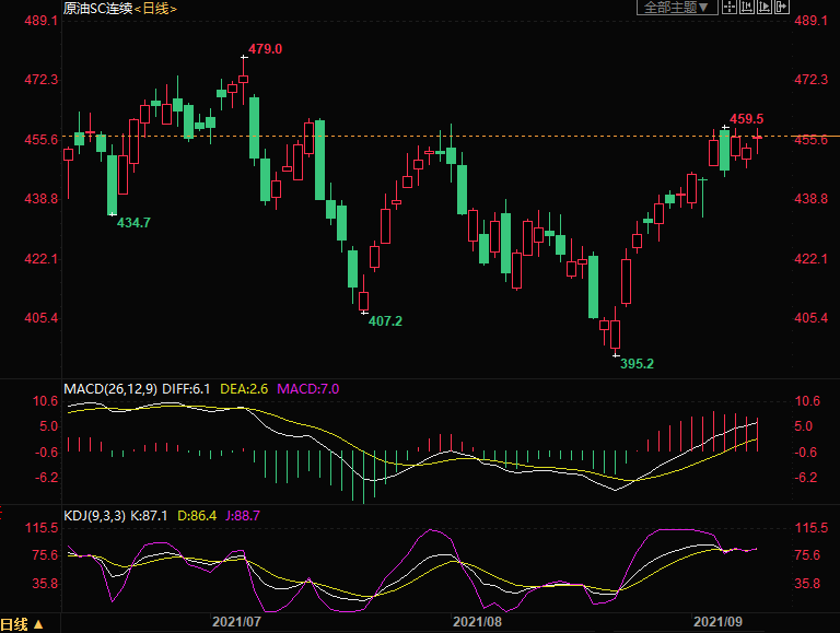 周四(9月9日)上海原油价格上涨,主力合约2110终盘收于457.1元/桶,涨6.1元/桶,涨幅1.35%,因为飓风艾达造成破坏,导致美国墨西哥湾石油产量下降。