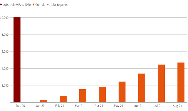 (截止8月,美国累计就业恢复数量不足疫情期间流失数量一半)