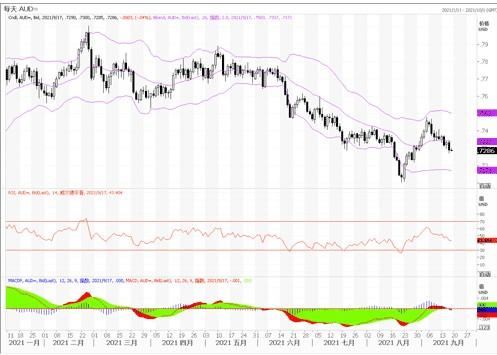澳元兑美元在周四亚洲交易时段再次受到看跌压力,而在纽约时段美国公布好于预期的零售数据后更是加速了下跌,盘中跌穿0.73低至0.7274。澳大利亚统计局(Australian Bureau of Statistics)周四公布的数据显示,失业率从7月份的4.6%下降到8月份的4.5%。但是,这是因为参与率从66%下降到了65.2%。更重要的是,就业变化为-14.63万,远远低于市场预期的-7万。借来市场焦点将放在美联储9月份的议息会议上,如果会议对于缩减购债规模以及加息方面有任何鹰派的意向,料都将会对澳元构成压力。4小时图上,汇价受压于短期均线下方,技术指标向下发散,澳元跌势仍将延续,下方关键支撑在0.72,若能撑持稳固,或存在反弹机会。否则跌势将会考验8月中旬的低位0.71附近。