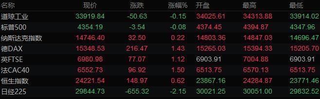 美股收盘情况:标普500指数下跌0.1%,报4354.19点;道琼斯工业平均指数下跌0.2%,报33919.84点;纳斯达克综合指数上涨0.2%,报14746.4点;纳斯达克100指数上涨0.1%,报15027.77点;罗素2000指数上涨0.2%,报2186.183点。