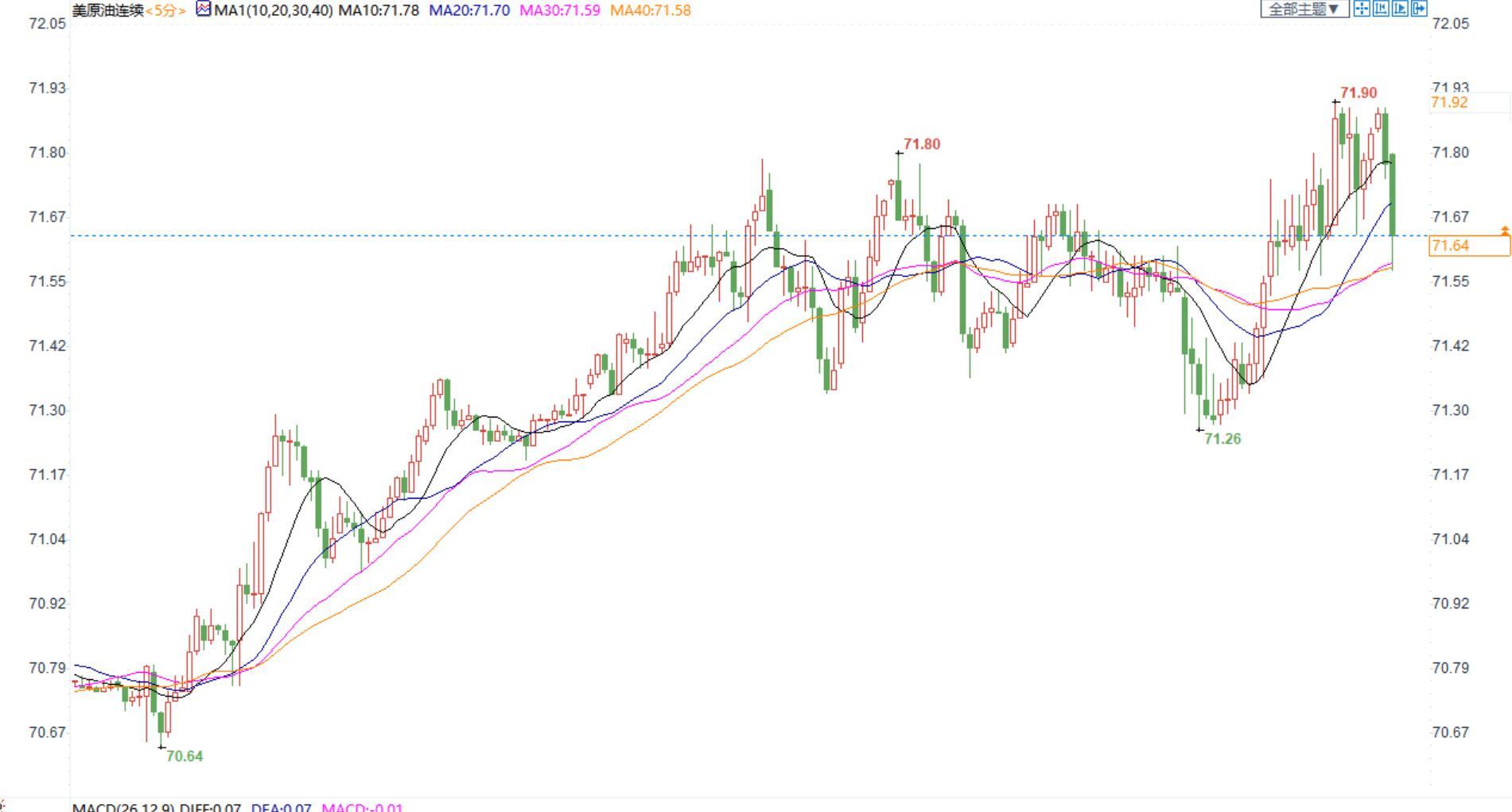 美国原油价格5分钟图显示