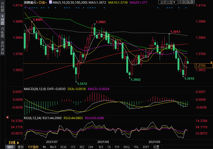 日内由于恒大下个月偿还债务的不确定性降低了投资者信心,受避险交易的影响,英镑兑美元跌至1.3700附近,当日下跌逾0.1%。