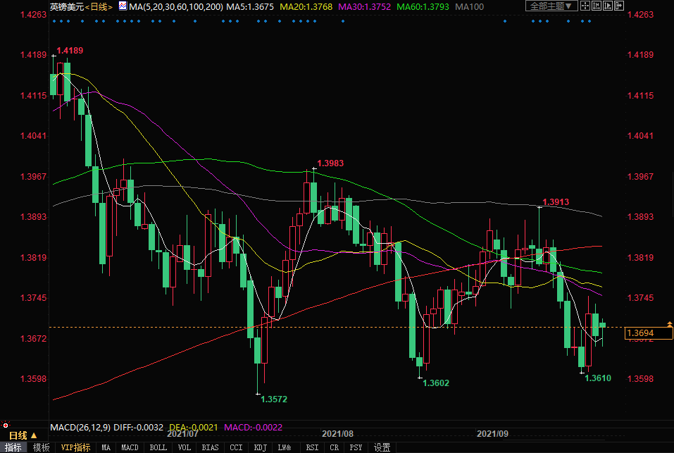 周一(9月27日)英镑兑美元下跌但跌幅有限。上周,随着英国央行(BOE)结束9月份的政策会议,英镑在上周一度实现了意外复苏。正如市场普遍预期,英国央行货币政策委员会(MPC)本月决定维持利率在纪录低位不变。不过,英银预计CPI将进一步上升,推动市场将英国央行加息15个基点的押注提前至2022年3月(此前为2022年5月)。