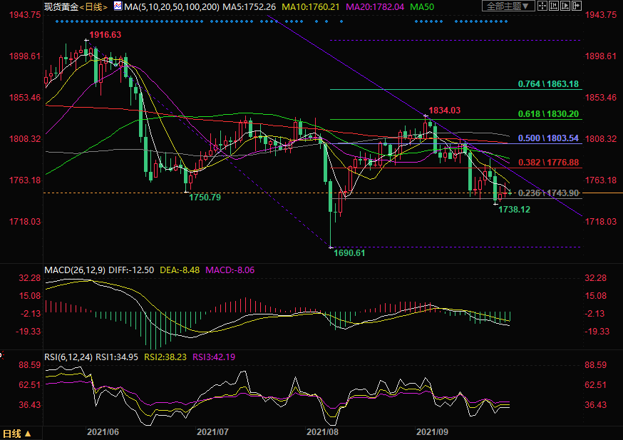 上方阻力关注10日均线1760.30,进一步关注38.2%回撤位1776.88以及50日均线1788.05。