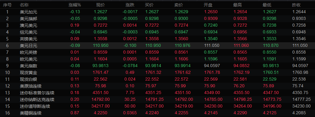 金价录得自9月3日以来的首次周线上涨,现货黄金小幅走高,收于1761美元关口附近,因美元走弱,以及对通胀上升和经济增长风险的担忧,盖过了对即将加息的押注。