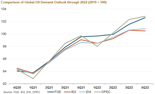 2019年,2022年第二季度和第三季度全球石油需求复苏时间表