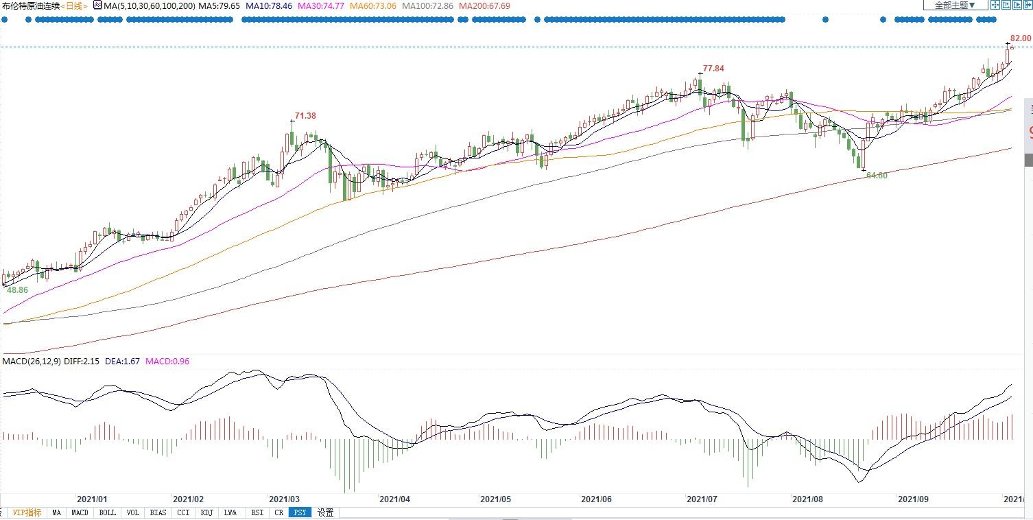 北京时间10月5日14:02,布伦特原油主力合约价格报81.43美元/桶。