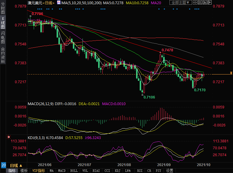 周四(10月7日)在0.7300上方再次遇阻后,澳元兑美元在欧洲市场缩减涨幅,尽管市场风险偏好情绪回暖。