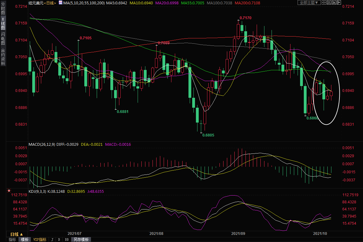 新西兰联储10月6日于七年来首次升息,幷表示将进一步收紧政策,寄望为国内经济和红火的房地产市场降温。但纽元在加息后震荡走弱,一度跌至0.6877,本国央行升息被证明是虎头蛇尾,最终收报0.6939,周线收跌0.13%。