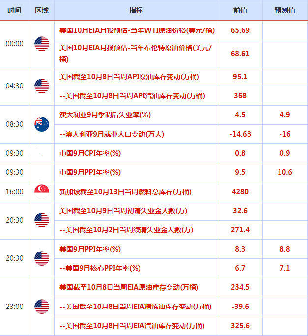 周四亚洲时段,投资者需重点关注中国9月份的CPI数据和PPI数据。