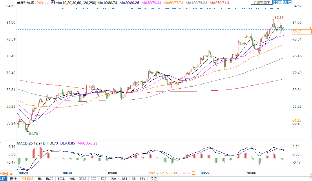 能源紧缺引发经济复苏担忧,美油交投震荡收于80美元之上