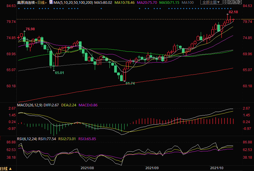 上方阻力位关注各个整数关口,下方支撑位首先关注5日均线附近的80.00心理关口,进一步关注10日均线78.46以及7月6日高位76.98。