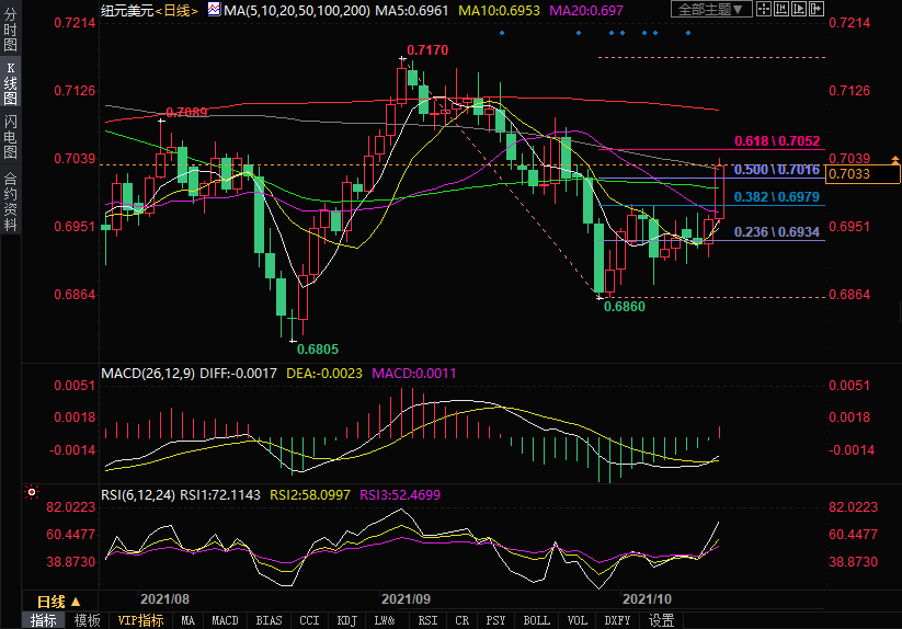 上方阻力关注0.7052、0.7081、0.7103,下方支撑关注0.7000、0.6979、0.6934。