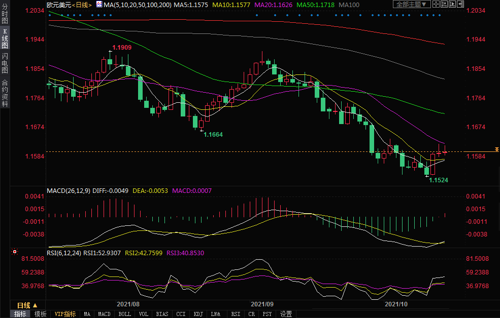 到目前为止,欧元兑美元持平,报1.1597,并面临下一个上升阻力1.1624(10月14日的周最高),随后是1.1640(10月4日的周最高),最后是1.1719(50日移动均线)。