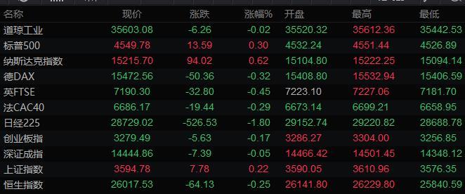 全球主要市场行情一览