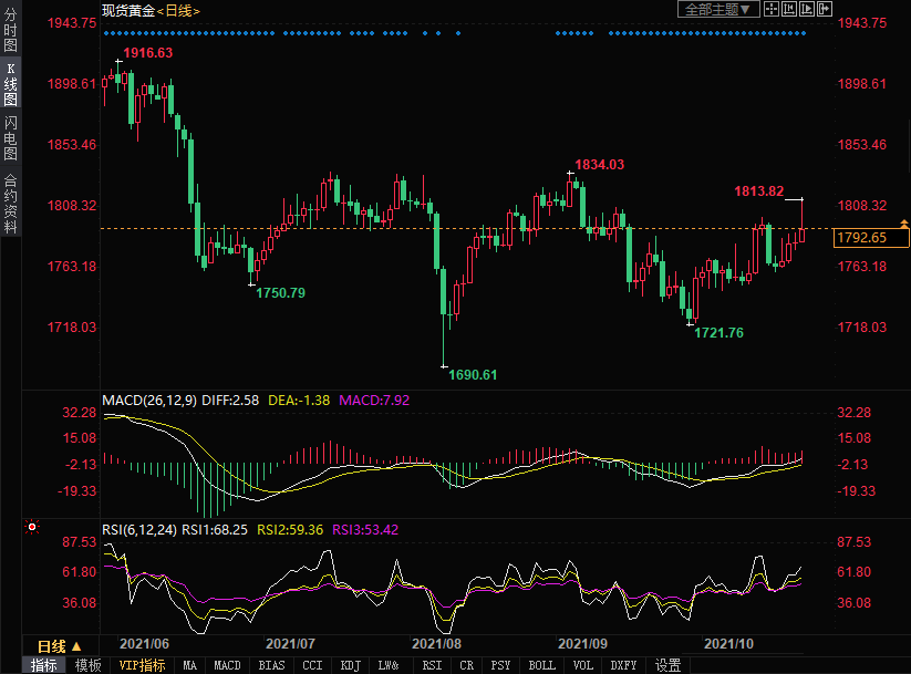 本周现货黄金走势积极,上涨1.42%至1792.65美元/盎司,为连续第二周上涨。在市场基本消化美联储11月缩减购债的预期之后,本周金价的涨势主要由通胀预期推动,另外美元指数的连续下滑也支撑了金价,但是本周美联储官员的讲话以及美股再刷历史新高限制了金价的涨势,尤其是周五鲍威尔的讲话令金价涨势大幅回撤。