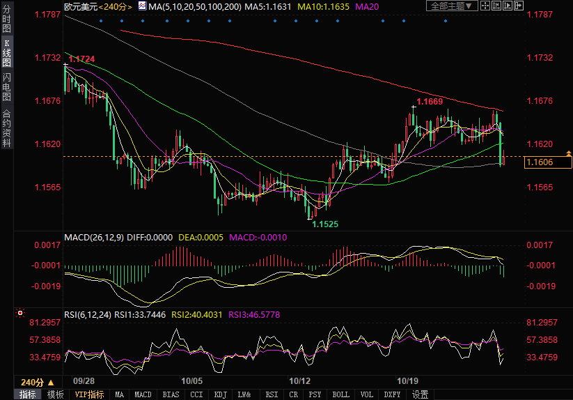 如果跌破日低位1.1591,则看向10月1日低位1.1563及10月12日低位1.1524。