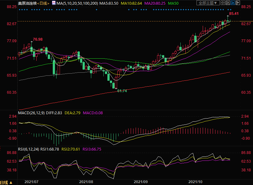 周二(10月26日)美原油小幅下跌,短线油价上行仍有坚实的基本面基础,但短线可能面临技术性回调,建议投资者逢低做多。