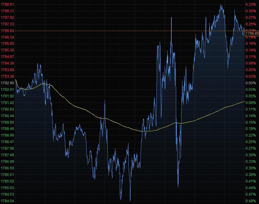 现货黄金小幅收涨,报1796.85美元/盎司,随着对经济增长的担忧再度升温,全球债券收益率走低,推动黄金价格收复了早盘跌幅;基准30年期美国国债的收益率周三下跌超过10个基点,全球债券收益率曲线趋平,暗示投资者对经济增长可能放缓感到担忧,不过这对于黄金是个利好,因为投资者在经济动荡时期往往为避险而买入黄金。