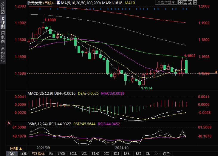 汇价面临的下一个上行阻力是10月28日的高点1.1692,随后是9月27日高位1.1732,最后是100日均线1.1768。