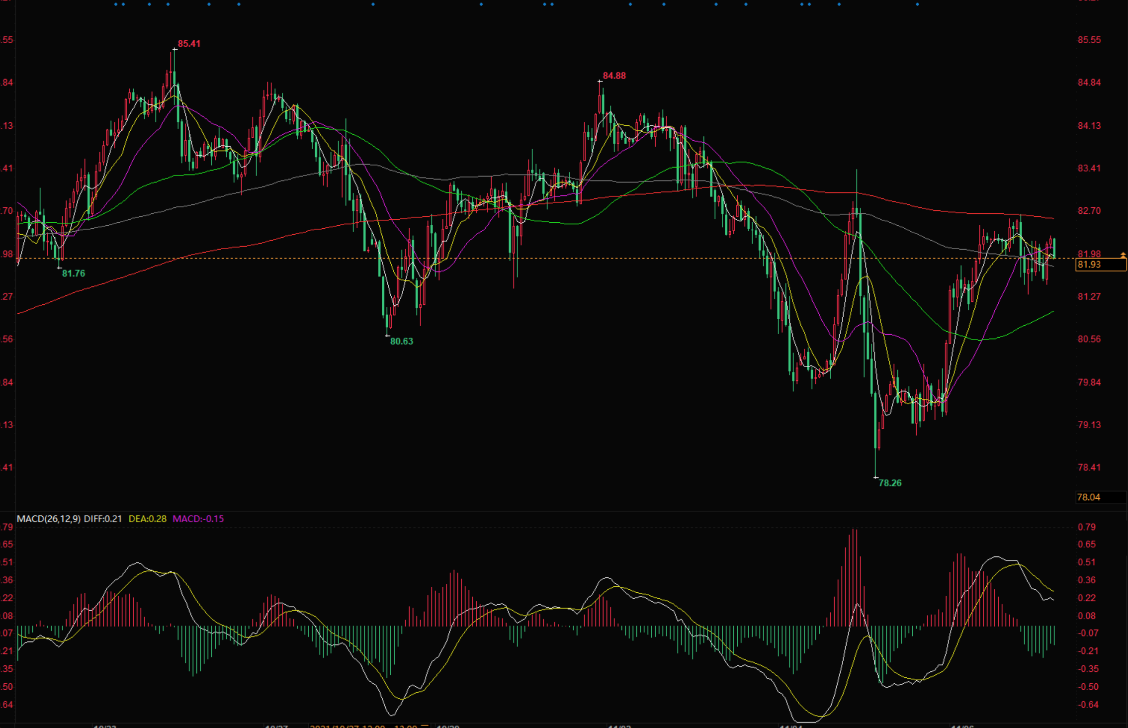 周一(11月8日)美油上涨0.68美元,涨幅为0.81%,结算价报81.93美元/桶。布油上涨0.69美元,涨幅为0.83%,报收83.43美元/桶。稍早,两大合约都一度上涨1美元以上。市场在周一午后的大部分时间里都呈现横盘整理走势,投资者在观望美国是否会从战略储备中释放原油,以及如果释放的话规模会有多大。