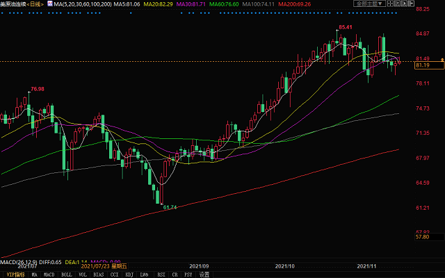 北京时间11月16日19:30,美原油期货价格报81.19美元/桶。