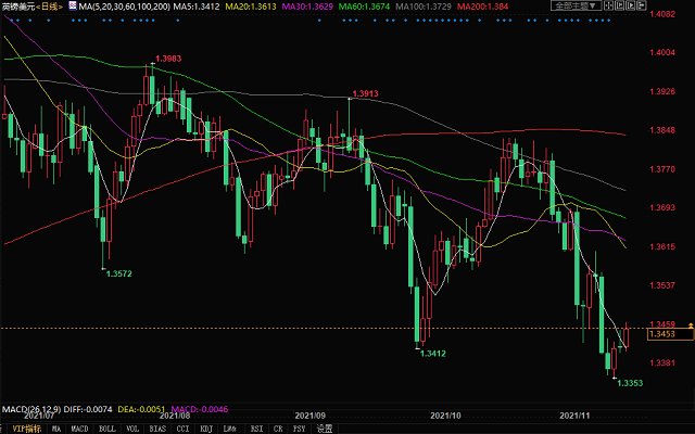 周二(11月16日),英镑兑美元上涨,亚市盘中公布的英国10月失业率进一步下降,录得5.1%,创去年3月以来新低。另一方面,得益于美国国债收益率上升,美元指数周一一度攀升至2020年7月以来的最高水平,周二则小幅下跌。