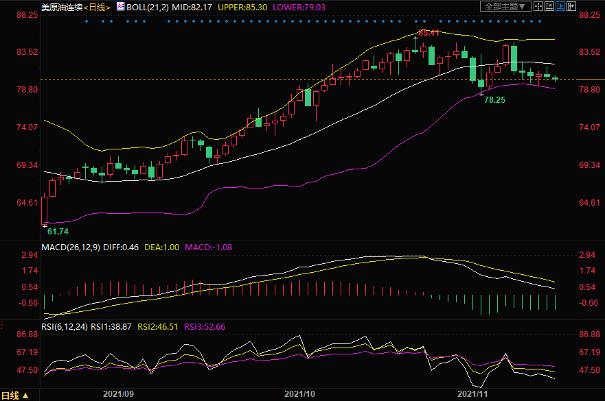 上方初步阻力关注20日均线82.10,进一步关注11月4日高位83.42以及11月10日高位84.97。