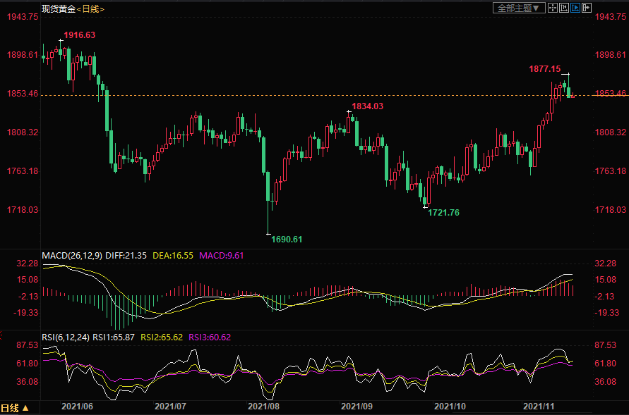 如果金价进一步下跌,下方初步支撑关注5月10日高位1845.49,进一步关注9月3日高位1834.03及11月10日低位1822.42。