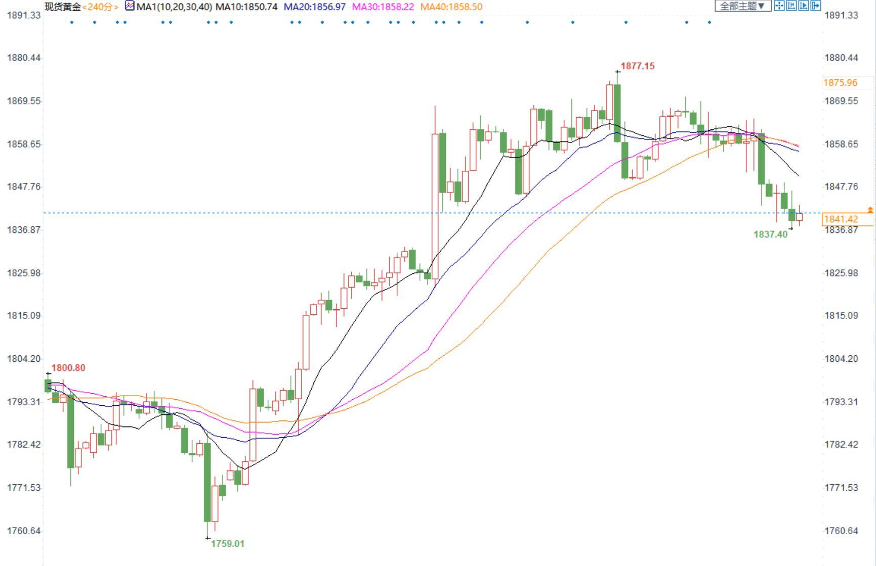 周一(11月22日)欧洲时段盘中,现货金价维持震荡回落的走势。时段内金价最低触及1837美元,跌破1840美元关口。自上周五以来金价出现较大幅度回落,主要因欧美疫情升温,这导致封锁的担忧情出现,投资者抛售包括金价在内的固定资产,换取流动性更强的美元,给金价短线压力。