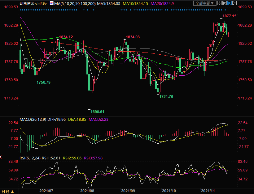 上方初步阻力关注10日均线1854.18,进一步关注11月19日高位1865.73以及11月16日高位1877.15。