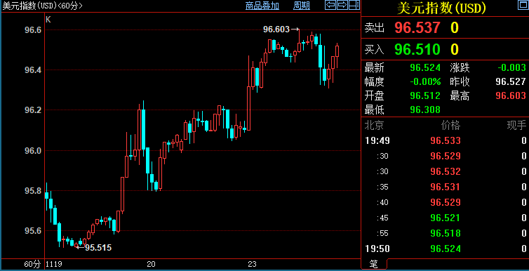 美元指数续创2020年7月中旬以来新高至96.603,因美国总统拜登周一(11月22日)提美联储主席鲍威尔连任,并提拔美联储理事布雷纳德担任副主席。