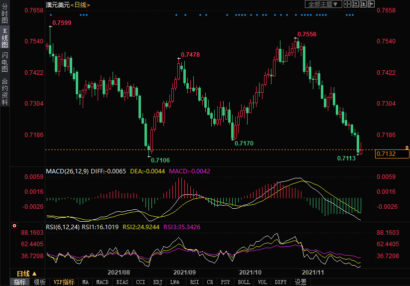 周一(11月29日)澳元兑美元在北美市场保持了盘中的温和涨幅,尽管似乎难以在0.7160上方延续上涨。