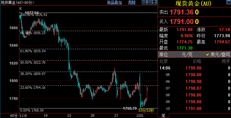 周三(12月1日),现货黄金止跌反弹,离开隔夜创出的11月4日以来新低1770美元,市场对新出现的Omicron冠状病毒变种感到紧张。但美元在加息预期中重新获得支撑,限制了金价上行空间。美联储主席鲍威尔摒弃“通胀暂时论”,暗示本月可能决定加快缩减购债步伐。