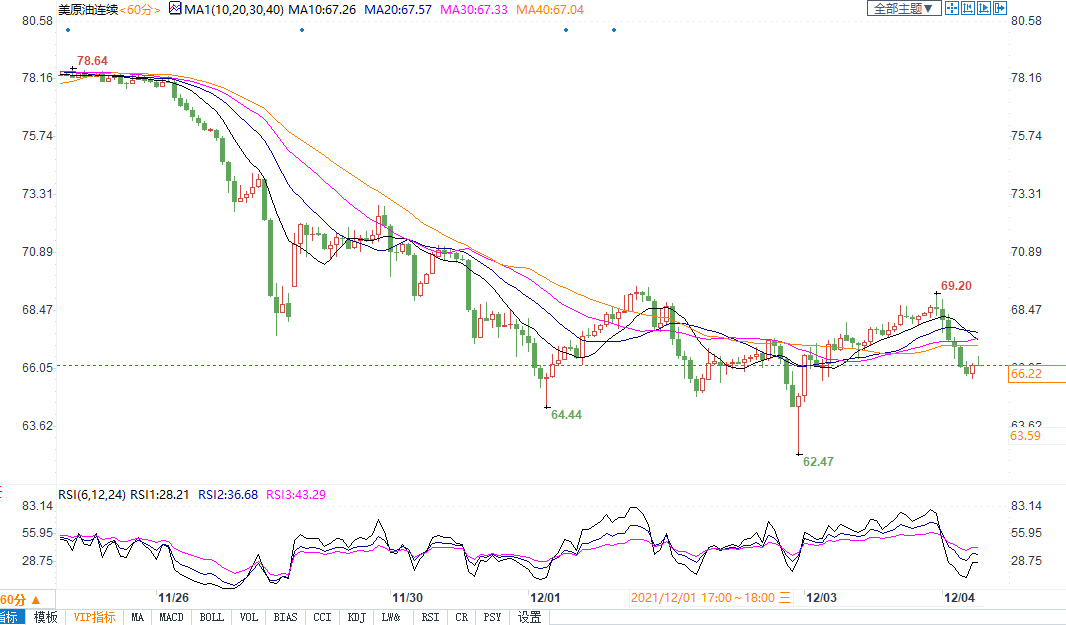 周五(11月3日)布油期货上涨0.21美元,结算价报69.88美元/桶,本周累计下跌2.47%,为2018年11月以来首次连续六周下跌。由于人们越来越担心新冠病毒病例的增多和一种新变种可能会减少全球石油需求,同时OPEC及其盟友本周决定1月份日增产40万桶原油,最终屈从于来自消费方的压力,令油价承压。