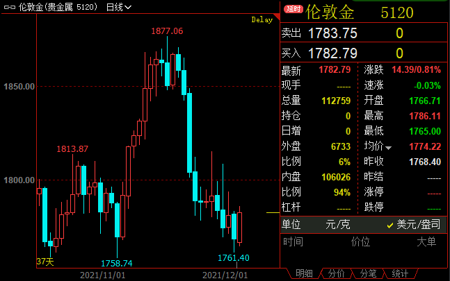 现货黄金连续第三周收低,盘中创11月3日以来新低至1761.40美元/盎司,但终盘回补多数跌势,收于1782.79美元/盎司。南非发现Omicron变种毒株后,多国陆续报告病例,并收紧边境管控加以应对。