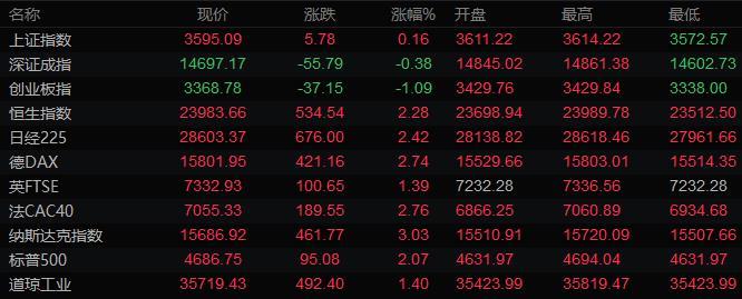 美股收盘情况:标普500指数上涨2.1%,报4686.75点;道琼斯工业平均指数上涨1.4%,报35719.43点;纳斯达克综合指数上涨3%,报15686.92点;纳斯达克100指数上涨3%,报16325.66点;罗素2000指数上涨2.3%,报2253.788点。