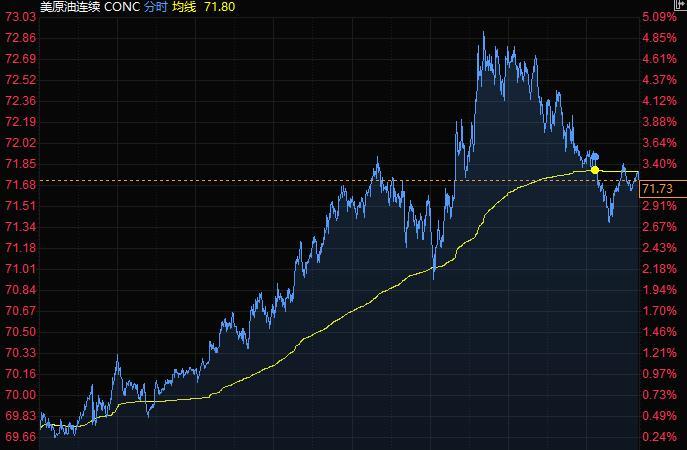 油价周二继续攀升,美油盘中上涨5.1%,尾盘收报71.73美元/桶;因为市场乐观预计Omicron变异株可能不会那么严重,缓解了投资者对需求前景的担忧。