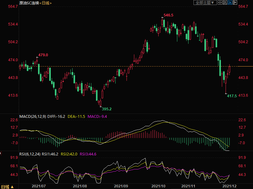 对引起新冠病毒奥密克戎变体的需求担忧有所缓解,沙特上调对亚洲和美国供应的原油官方销售价,国际油价大幅度上涨。来自南非的报告称,奥密克戎的病例只有轻微的症状。这一报告缓解了市场对于奥密克戎的担忧气氛。技术面,油价短期利空充分消化,行情或进入修复整理阶段。操作建议:震荡反弹思路操作。