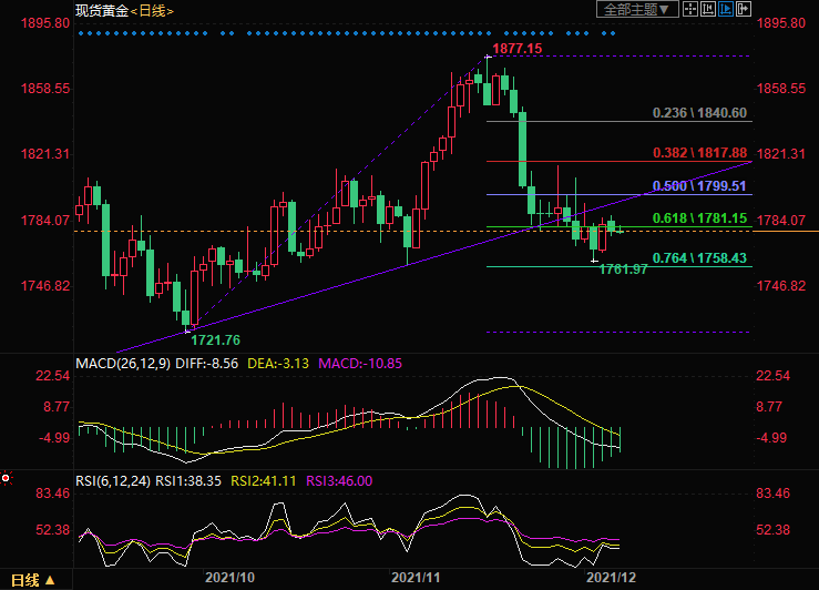 上方初步阻力关注12月6日高位1787.75,进一步关注心理关口1800.00以及11月30日高位1808.72。